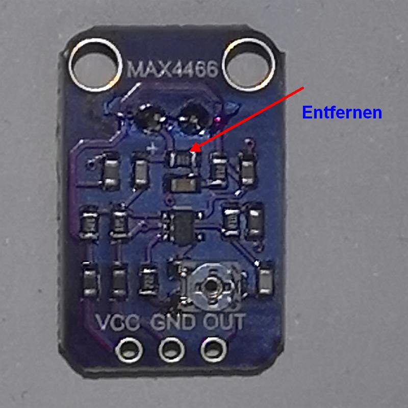 Nachdem das erledigt war, habe auch ich auf die kleine Platine mit dem MAX4466 zurückgegriffen, die es für etwas mehr als einen Teuro bei den diversen Anbietern gibt. Ich wollte allerdings nicht den kleinen Lautsprecher dafür opfern und vor allem nicht die auf dem Platinchen vorhandene Kapsel verwenden, sondern die Originalkapsel.